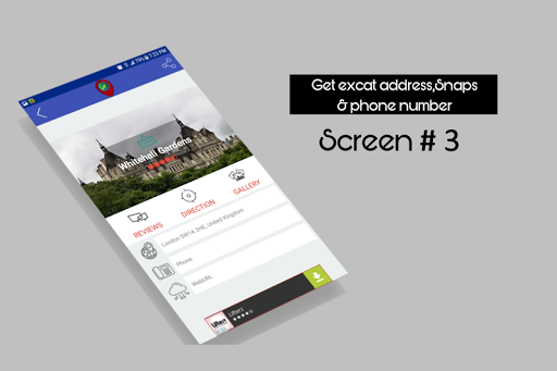 • Each location is attached with full details including address, images, rating, phone number, map direction, user review and distance from the place you are currently standing at.