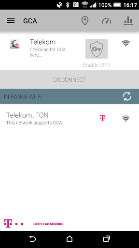 GCA for Android™ allows mobile users (business customers) to connect to global Wi-Fi hotspots that are part of the GCA Network. The GCA solution empowers mobile users and IT administrators to gain control and enjoy unprecedented wireless network access across the globe. Based on the policies set in the GCA Portal, GCA users enjoy seamless connectivity to the GCA Network without having to authenticate individually to each hotspot.