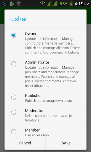 7) User can be Owner, Administrator, Publisher, Moderator or Member of Cricket Hubs.