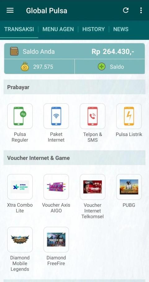 The Global Pulsa android application is a free mobile application for loyal members of Global Pulsa wherever located. This application makes it easy for you to perform various transactions such as topping up pulses, internet packages, purchasing electric tokens, postpaid bill payments, purchasing game vouchers, etc.