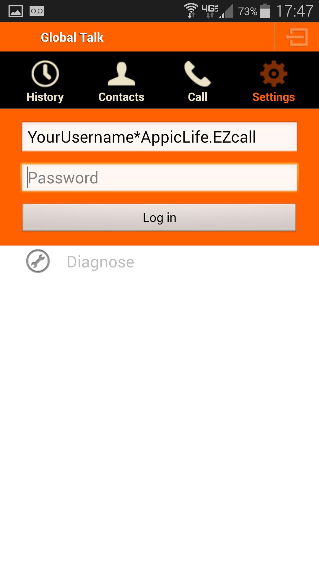 Step 2: Log in with yourusername*AppicLife.EZcall