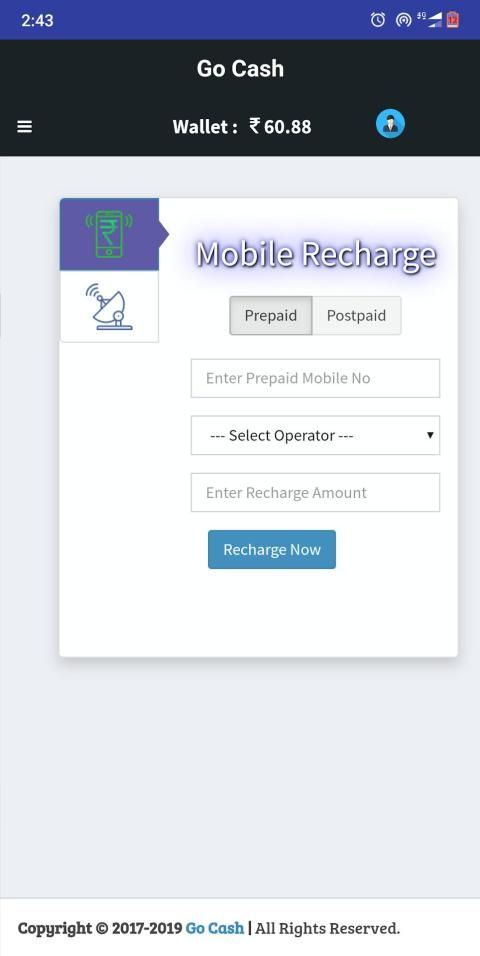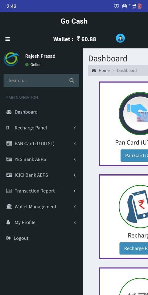 Go Cash is a online B2B service provider company. Go Cash Is Fully Secure And Super-Safe. Each And Every Transaction Fully Encrypted. Your Money Always Yours Until You Use It. Go Cash - Aadhaar Banking, Online Recharge, Bill Payments, Money Transfer & PAN Card (UTIITSL). Go Cash helps to connect the rural, urban and semi-urban towns and villages in India through its portal for all financial and non-financial services. Our strength in the fields of service, distribution and payment processing enables the centers to provide various online services at ease and economically. In today’s sophisticated world, time is a huge constraint. We at Go Cash make every minute of yours, count. Avail major services online, no more waiting in long queues to pay your mobile, DTH , gas, electricity and other bills, Pay at your convenience through our portal in a nearby center. Also, avail mobile and DTH recharge appear online.