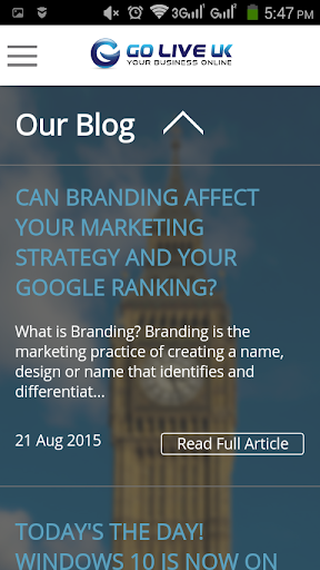 Go Live UK mobile application is aimed to provide a valuable information about Go Live UK Ltd.- our area of expertise, contact details and an overview of the recent posts in our blog. The application makes it easy for users to contact the company.