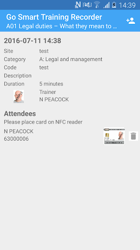 Once the training has been completed, hold the attendees’ smartcards to the back of your device to instantly create a digital training record.