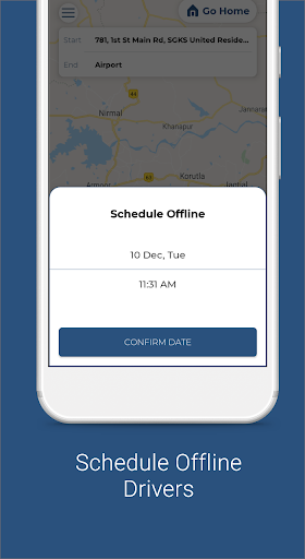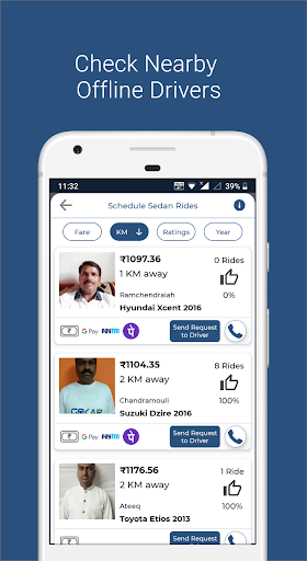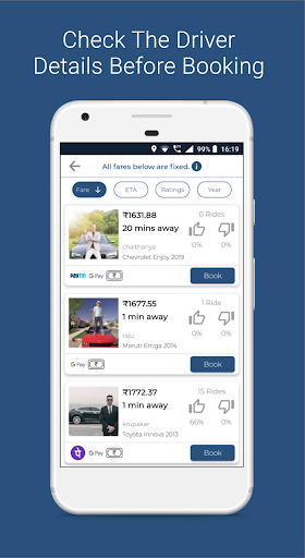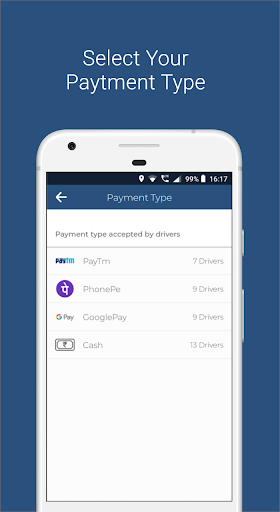 • Based on the location you are at, the app shows the list of available car types and drivers nearby.