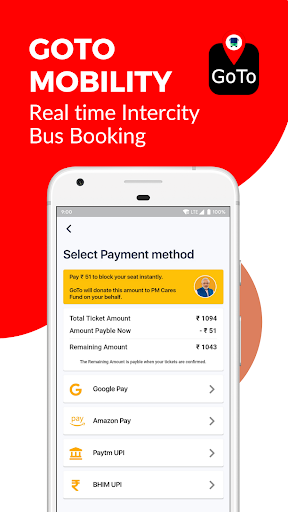 GoTo is Safest & Smartest Way for Intercity Travel in India, It is first ever Real-Time intercity Mobility solution that saves Money and time both for Passengers travelling Intercity frequently and make instant travel Decisions, It is a Power for Mobility Artificial Intelligence Solution which is based on your and passenger locations, GoTo Intercity enables you to board fleet on Real-time Functionality based on google maps and creates Nearest Boarding points also show Expected Time of Arrival of the buses in Dynamic way, it is as similar as Cabs coming to your location to pick you, just ask you to reach on nearest en-route location