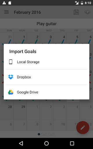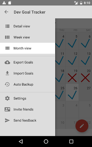Daily auto backup to local storage. Use calendar to select any day in the last week and restore habits / goals if needed.