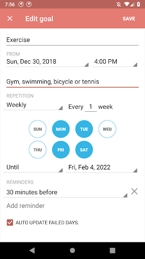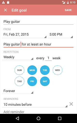 Schedule weekly habits / goals for any combination of week days.