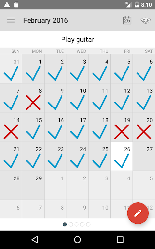 For each day that you do your task, put a big mark over that day. After a few days you’ll have a chain. Just keep at it and the chain will grow longer every day. You’ll like seeing that chain, especially when you get a few weeks under your belt. Your only job next is to not break the chain.