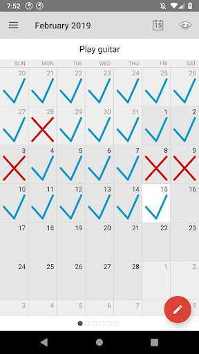 Monthly calendar view. Log all days on one screen.