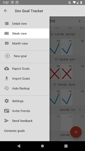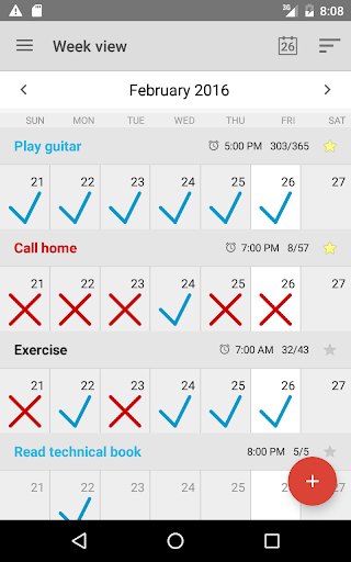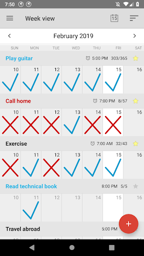 Weekly progress calendar view. Log all habits / goals on one screen.