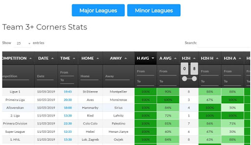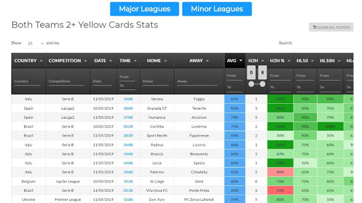 Daily calculated & updated, Goals Corners Cards provides professional football betting & trading statistics covering 66 different football betting markets.
