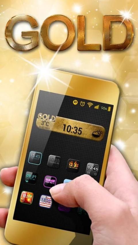 Dress up your phones in Gold Digital Clock for a full deluxe experience! You will feel majestic once you add a golden shine to your device! You want to be elegant? Now this is possible with digital clock with date and time display because it has impressive HD quality! Don't hesitate! If you are a person of class and style, then this luxury clock widget is perfect for you! Looking for decorating apps for your phone? Is your style fabulous? Then this “golden clock” is a must for you! Experience the stunning theme of this digital clock for home screen! Gold luxurious themes exude brilliance – so for the wealthy impression you should install digital clock theme! See for yourselves how luscious time gadgets can be!