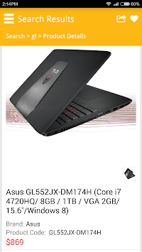 In the app, you will find full price list of notebook, desktop, accessories, and other hot gadgets. There're some useful functions like, mark as favorite for easy future viewing, share the information, or call us directly from the app.