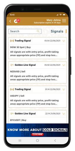 Gold Signals Application for live trading signals in forex and cryptocurrencies
