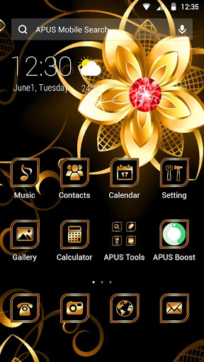 1. New black golden rose flower APUS luxury business theme is free, but only compatible with APUS Launcher. If you want to apply it, please install APUS Launcher on your Android phone. Or download the theme and APUS Launcher. When you install APUS Launcher, there are variety of themes in APUS theme & wallpaper store, such as flower, butterfly, rose, cool, cute cartoon monster, snoopy, comic, girly, lovely, magic, sports(football,basketball,cricket),festival(Valentine's Day, New Year, Halloween, Christmas)、cat and dog, butterfly theme. Install APUS launcher to apply the luxury theme.