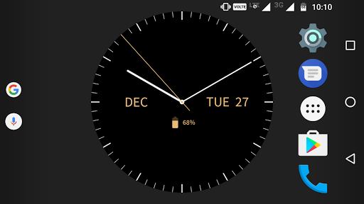 Golden Black Analog Clock Live Wallpaper is an Animated Analog Clock that displays a spinning Hands with Date, Month, Day , Battery Status and Percentage.