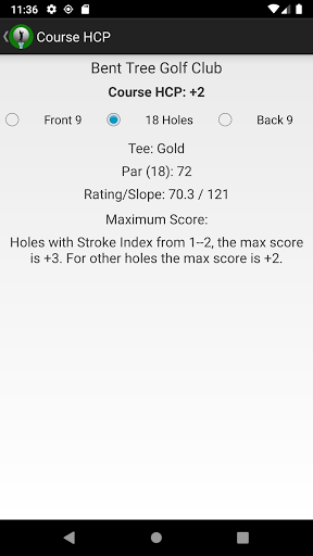 4. Calculate handicap for a specific course and maximum stroke (net double bogey).