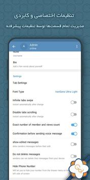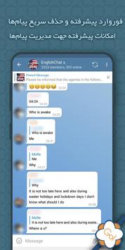 • Chat tabs: channels, bots, favorites, unread, administered, pv, group, etc.
