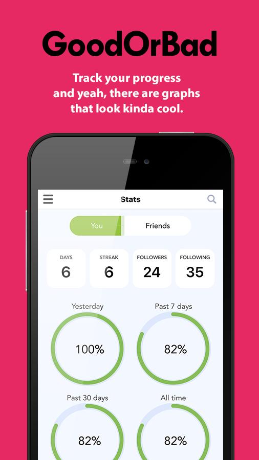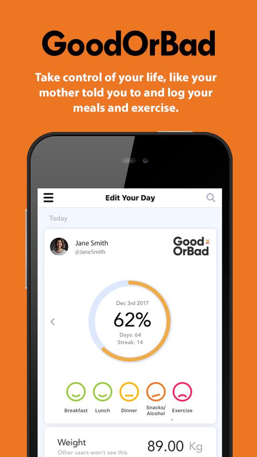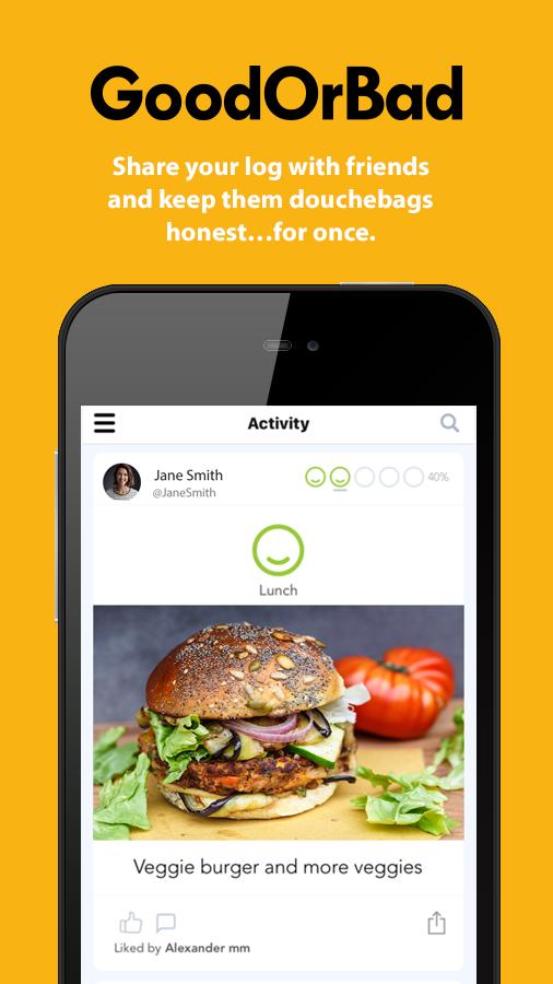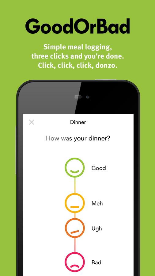 That’s why we’ve made the simplest, fastest meal-logging app there is. Let's face it, if it takes more than three clicks to do, you won’t do it. Every day. Every meal. That’s why we made Good or Bad.