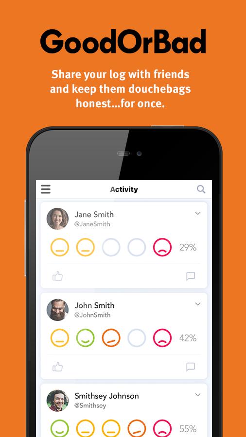 Share your log with your friends and keep each-other honest in your pursuit of a better you. Everything's better with friends, even losing weight and dropping a few pounds of fat. Good or Bad is there for you. It also makes you more honest.