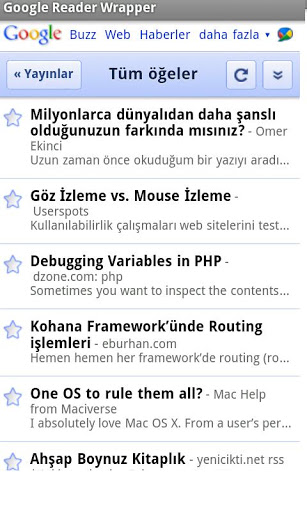 DescriptionThe interface for Google reader Mobile. This application displays only the Google Reader mobile interface. Will display the standard browser on the Android API.Javascript is active Google Reader.passwords and login details for the phone records in the database Does not use any middleware.