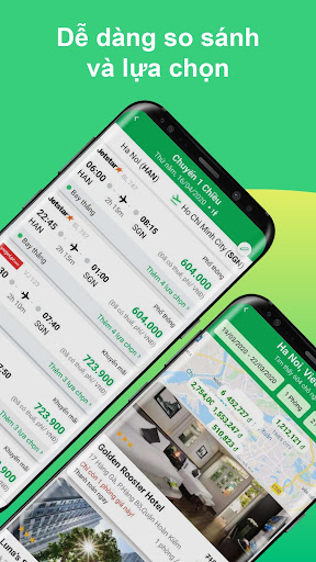 + Hotels: Easily compare and choose the right hotel according to destination, star standards, budget, amenities