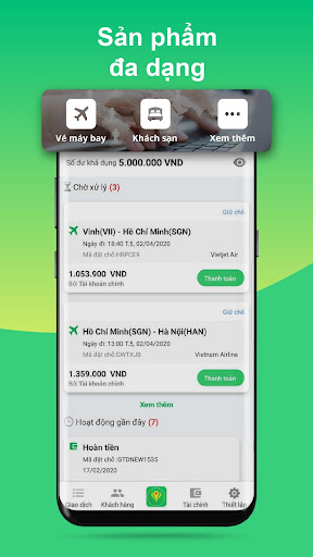 + Air tickets: Agents easily select the appropriate flight by airline, departure time/arrival, aircraft type, ticket conditions, baggage information...