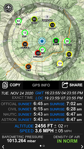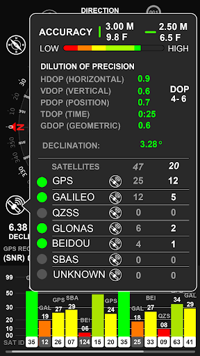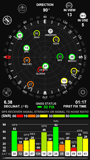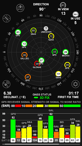 Get information returned from GPS satellites with Checking Satellite! View coordinates, number of available satellites, satellite time, satellite signal to noise graph dynamically, satellite positions are plotted relative to your location and other GPS statistics. Your coordinates are displayed in satellite view of the Earth.