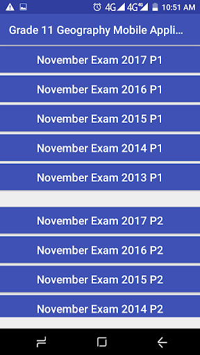 Grade 11 Geography Mobile Application has the following: * Examplers P1&P2 and Memos (2013) * November Exam Papers P1&P2 and Memos (2013 - 2017) * Amazing layout * And much more . . .