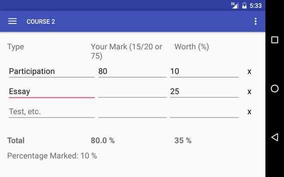Keep track of all your courses in one place! Grade Calculator allows you to save information for as many courses as you like, and will calculate your overall average, so you can see how well you're doing at any point in time!