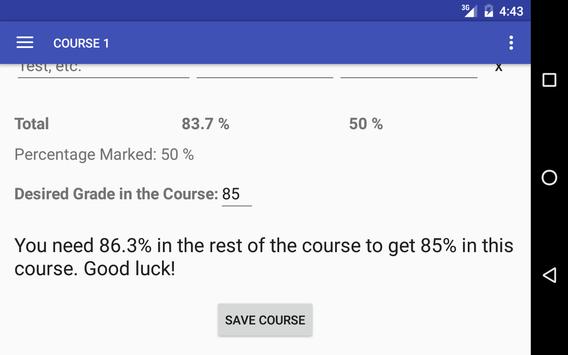 Get Grade Calculator and you'll see how easy it is to keep track of your marks, and never get below your desired grade again!