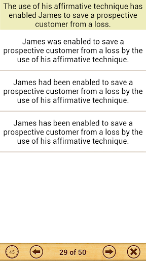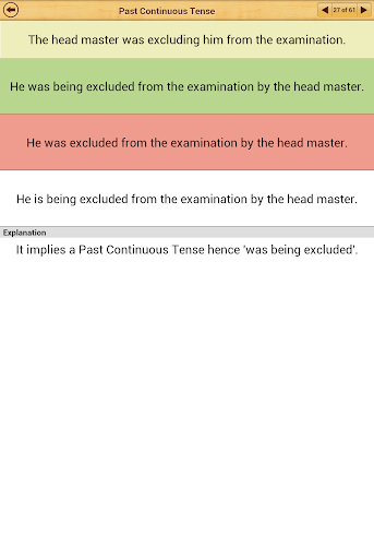 Grammar Express: Active and Passive Voice is the complete course in mastering transformation of sentences, a process which enables you to change a sentence from one grammatical form to another without changing its meaning. It's a valuable exercise for it teaches you how to introduce variety in writing English. It contains over 46 pages of lessons with several examples explaining how to change Active Voice into Passive Voice and the vice versa. You can learn the grammar rules, study the examples and test their understanding by taking quiz. At the end of quiz the user is presented with test summery and explanation for each test question. Grammar Express can help you to improve your understanding of Active and Passive Voice and make use of variety of expressions in writing English. Custom timer setting can assist you to improve response times under exam time constraints. Research suggest that kids and adults learn most quickly when playing learning games with real-time error-feedback. Grammar Express provides learners with an opportunity to improve strategies for grammar success.