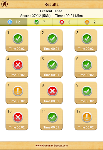 A summary of the practice test is presented at the end of each test. It shows you the time you took, the score, which questions you answered correctly and where you were wrong.