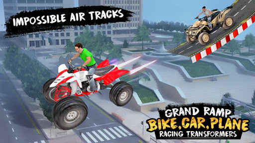 Have you ever thought of ride a Green moving bike, plane and Mega Ramp Car on the mega ramps of the 3D city? This transformers grand race will drive you crazy and blow your mind. You might have played the real car racing games but you may have not played car racing, motobike racing, plane flying on the scary Mega-ramp of real 3D city. Grand Ramp Bike, Car & Plane Racing Transformers provides you real fun to perform Mega Ramp Car crazy stunts on the dangerous ramps and longest paths. Become an expert Green moving bike rider, motobike racer and mega-ramp fusion car racer in the impossible games of 3D simulator. Play this impossible track 2018 racing game in 3D simulator to sharpen your driving skills of every crazy vehicle.