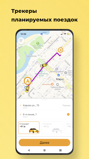 📱 Следите за поездкой на карте. Приложение сообщит время подачи, марку, цвет, номер машины, а также имя водителя.