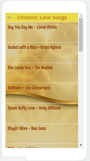 Andy William, Neil Sedaka, Elvis Presley, Barry Manilow, Lionel Richie, Bee Gees, Bellamy Brother, Carpenter, etc.