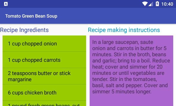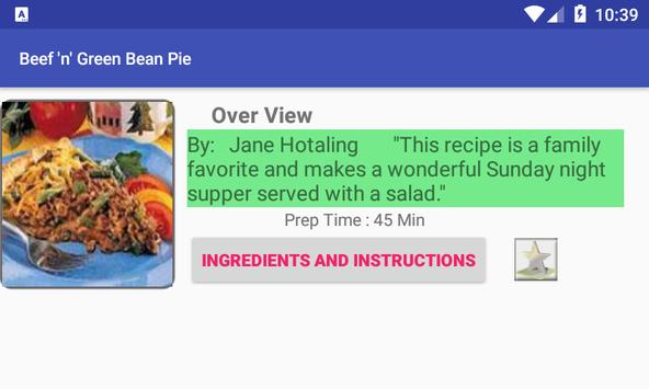 Install the free Green Bean Recipes app in your android mobile phone and see the meal that you want to prepare for yourself or for your friends and family. Click on the recipe you will see the overview of this recipe. Now click on the instructions in order to see the making instruction and ingredients of that recipe. Read these instructions carefully. Now get the ingredients and make the recipe according to the instructions. We put the recipe ingredients and the recipe instructions on the same page to make the recipe easy for you. Now press the back button of your mobile you will back to the overview of that recipe again and if you like to favourite this recipe then click on the star the recipe will move to your favourite list. When you want to remove any recipe from the favourite recipe list then go to the favourite recipe list and click on the recipe which take you to the overview page so click on the star the recipe will be removed from favourite recipe list. And if you want to check the other recipes then go back by clicking the back button of your smart mobile phone. You will get the first page of Green Bean Recipes app. Now check the other recipes of the app and select the recipe that you want. Make the recipe and enjoy the stuff. Note if you like the Green Bean Recipes app then give the feedback in the form of stars and review and if you do not then please give your remarks to email "niaztoali@gmail.com" in order to make the app better with your help. Thanks for your time and useful remarks.