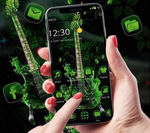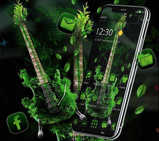 Green Leaf Guitar Theme have Guitar backgrounds, Green Leaf app icons, Guitar fashion wallpapers and music digital effect. This Green Leaf launcher (icon packs) Guitar theme is specially designed for Guitar people who love music theme.
