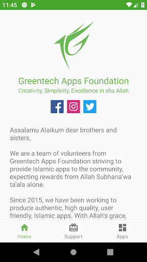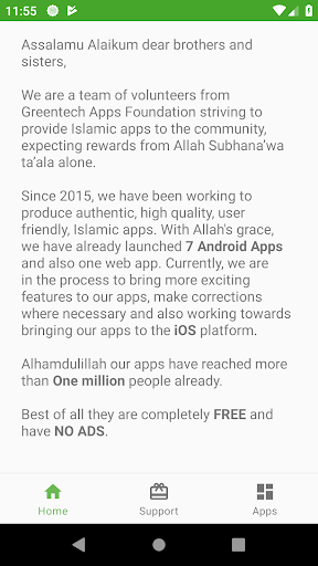 Greentech Apps Foundation has been working to produce Authentic, High-Quality, Universal & Free Islamic Apps since 2015.
