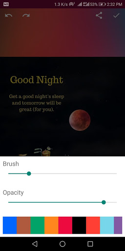 This is a must-have free 'text on image' or 'photo on image' editor app for all occasions & purpose! It's complete fun to use. Unlimited greeting cards for all occasions, a huge collection of quote images, all categories wallpapers, photo frame, text editor, paint brush and eraser, smileys and emojis, stickers, wish images, different fonts, colors & more.