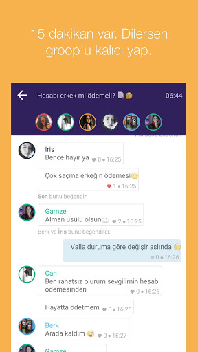 Salamat sa Smart algorithm, nakakakuha kami ng isang groop sa limitasyon ng oras sa mga taong ikaw ay tatangkilikin. Pagkatapos ng mga groopies ay maaaring magpatuloy upang makipag-usap.