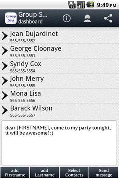 "Group SMS" allows you to send personalized SMS to a group of people.