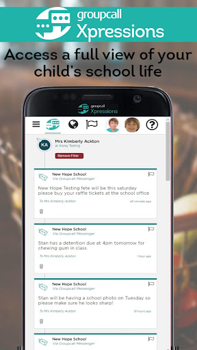 Groupcall Xpressions is a child-centred personal communications timeline showing messages and updates from your child(ren’s) school(s):