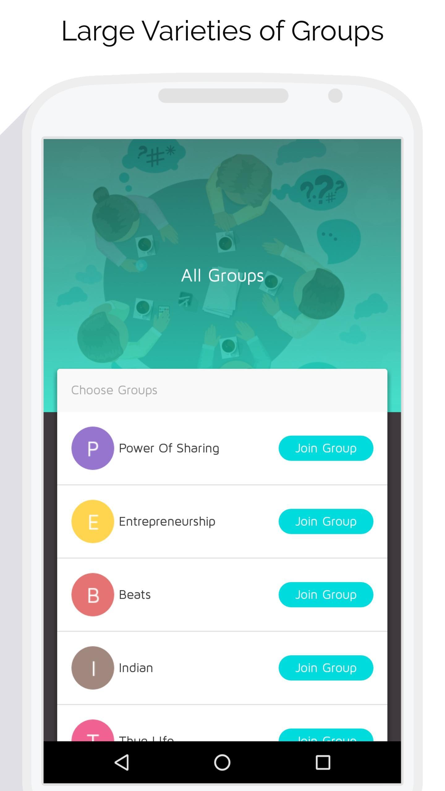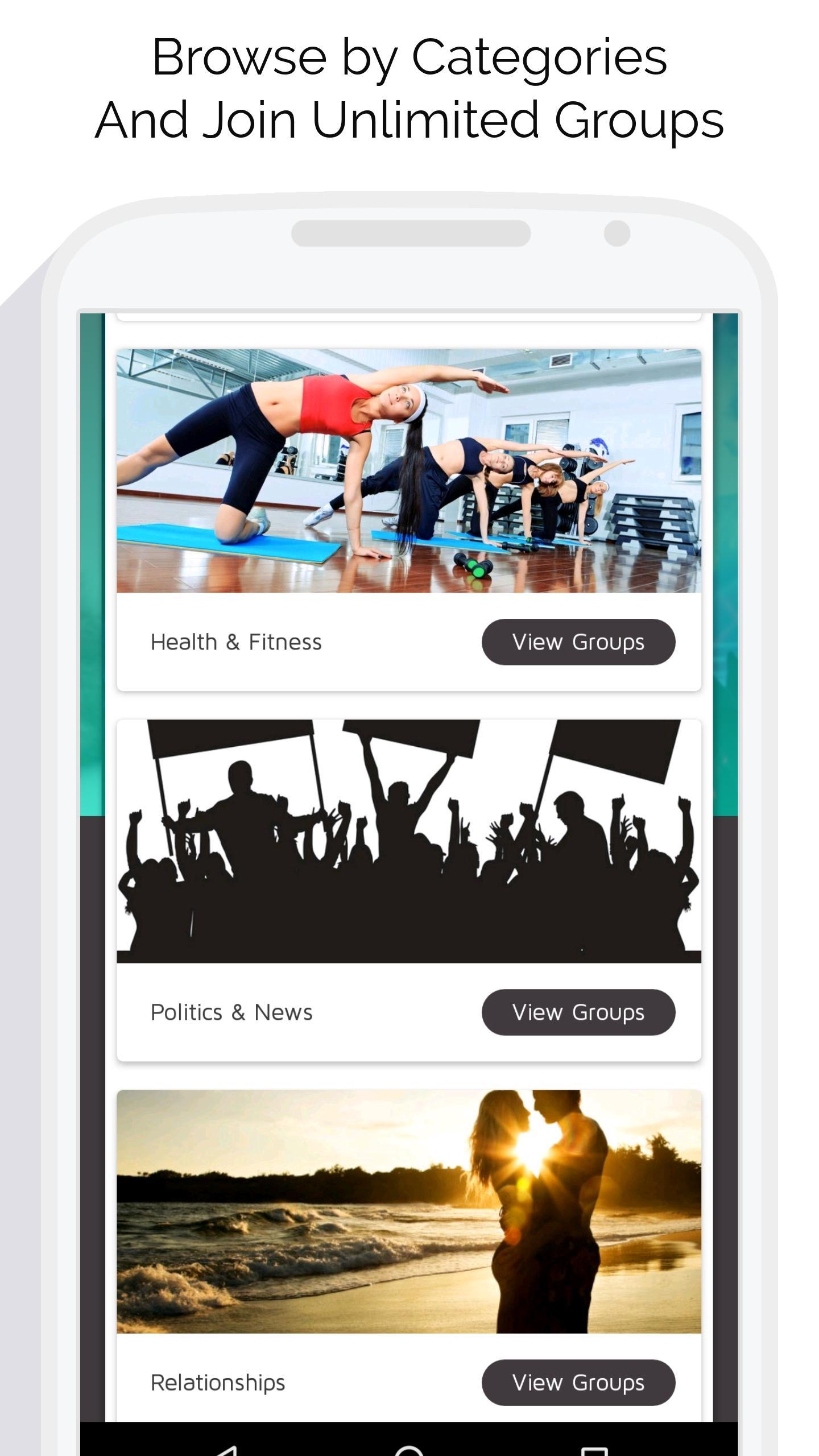 One of the most social application to connect people from all over the world. Join a community of more than million people and share your thoughts and feelings with others. Select or search for your desired groups form more than 25+ categories biven below