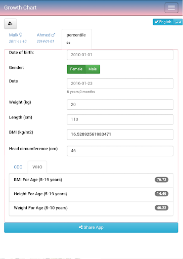 3- Sharing Charts, After Viewing the Growth Chart, you can share it via e-mail, social media,etc.