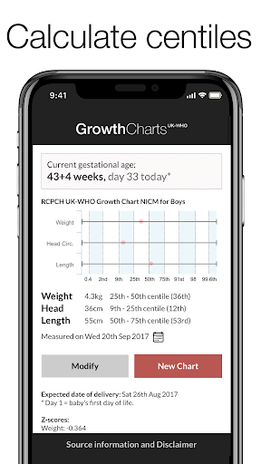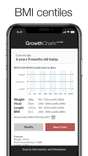 Growth Charts UK-WHO uses UK-specific growth chart data to help paediatricians and health professionals calculate weight, length, head circumference and BMI growth centiles for babies, infants and children. This app performs one-off calculations and does not store historical data.