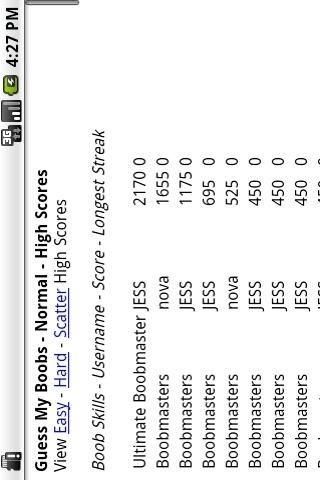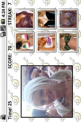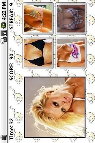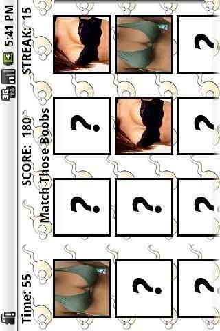 Compete with opponents across the world to become the Ultimate Boobmaster. *Lite Version has limited features Do you have what it takes to become the Ultimate Boobmaster? Compete against opponents across the world and battle for the top spot on the Guess My Boobs leaderboard. Only one person can hold the title of Ultimate Boobmaster and if you think you have the mojo to perfectly pair face to boobs than put away your lube and whip out Guess My Boobs. Features: - Hundreds of beautiful and sexy women updated weekly to keep new girls flowing through the game - Multiple gaming modes ranging from the Original Guess My Boobs to scatter modes and multiple mini-games - Variety of difficulties including Easy, Normal, and Hard to master on your journey to becoming the Ultimate Boobmaster - High-Score Leaderboard to post your scores and success to see how well you match up with opponents around the world - Mini-Games such as the Guess My Boobs Casino and Match Those Boobs available as stand-alone games - App2SD for android 2.2 users so there is always more space to keep adding new girls Guess My Boobs features hundreds of different women. There's a new game with new women each week so you will always be itching to become the Ultimate Boobmaster. These women are beautiful also, for all the people out there looking for eye candy. The object of the game is to pair the face on the left with the correct boobs on the right. Sounds easy right? It's not. Choose from three different difficulties in which you are given a random set of either 4, 6, or 9 Boobs for the brave soul. If you feel like taking a break from the pressure of Guess My Boobs, dive into our mini-games and give it your best shot. We have even thrown in a Scatter game mode which features a girl's face in a random location with 6 different boobs scattered about and you must find the correct one. The game starts with a 60 second clock that you must race against. You receive 10 points for every face to boobs you get right and receive -5 points for every face to boobs you get wrong. Get 5 face to boobs correct in a row and receive 5 bonus seconds. Get 10 face to boobs correct in a row and receive 10 bonus seconds. Get 15 face to boobs correct in a row and enter a Guess My Boobs Bonus Round which features the newly created Guess My Boobs casino and the Match Those Boobs bonus round! The game ends when the clock reaches 0. Submit your score at the end of the game to see how well you fair against opponents around the world. Or if you just want to surf through the girls, go into the newly added gallery and browse through all of our beautiful women. So, ask yourself. Do you think you are the Ultimate Boobmaster? Guess My Boobs - Lite was made with zero intentions of objectifying women to any degree. It is merely a game and should be treated as so.