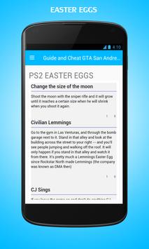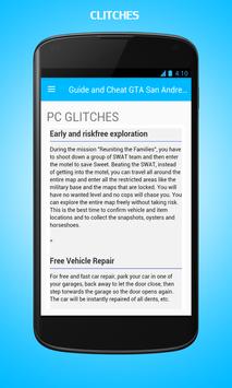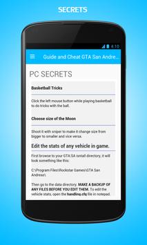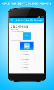 Guide and Cheats for GTA San Andreas is an unofficial application guide, walkthrough, information, strategies, tips & tricks, cheats, secrets, hacks, and everything for GTA San Andreas gamers! This app contain a very huge collections of information for GTA San Andreas such as mission guide, achievement guide, easter eggs guide, glitches guide and much more. Download Cheat and Guide for GTA San Andreas and become the best player of GTA San Andreas game!