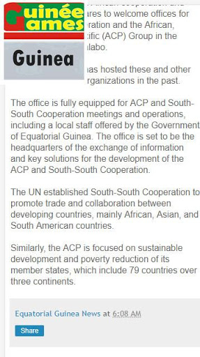 The Republic of Equatorial Guinea recently inaugurated theAfrican, Caribbean, and Pacific Group of States (ACP) South-South Cooperation Office in Malabo.